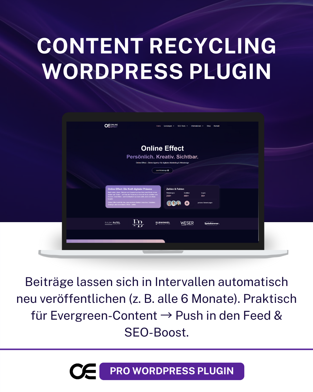 Mit dem Content Recycling Manager bleibt dein Evergreen-Content immer frisch im Feed und sorgt regelmäßig für neue Besucher.