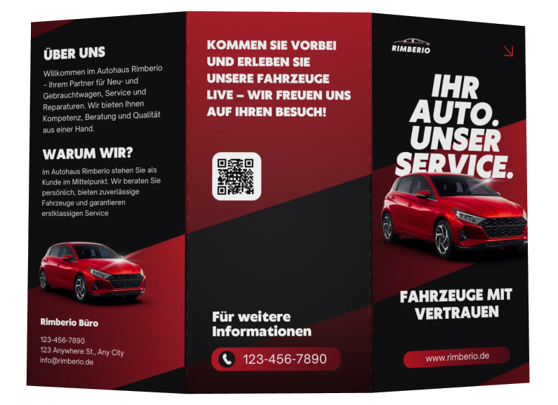 - Call-to-Action (CTA) wie Telefonnummer, Website oder QR-Code