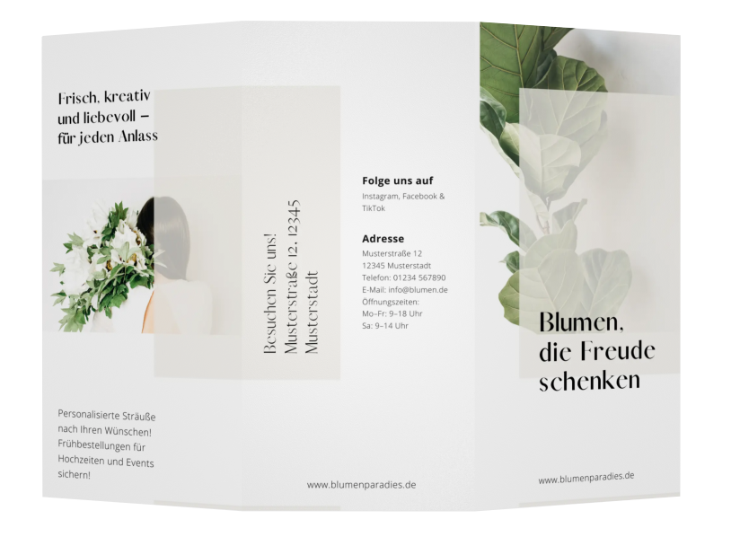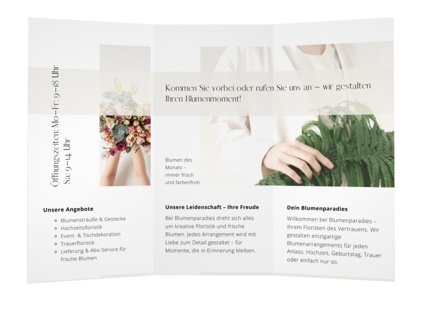 Wenn all diese Elemente stimmig kombiniert werden, wirkt Dein Flyer professionell, übersichtlich und ansprechend.