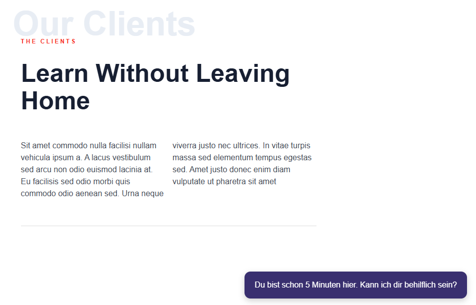 Die Einstellungen sind klar strukturiert und einfach zu bedienen. Du legst fest, nach wie vielen Sekunden ein Popup erscheint, welche Nachricht angezeigt wird und ob ein Button erscheinen soll. Neue Popups kannst du mit wenigen Klicks hinzufügen und bestehende jederzeit bearbeiten.