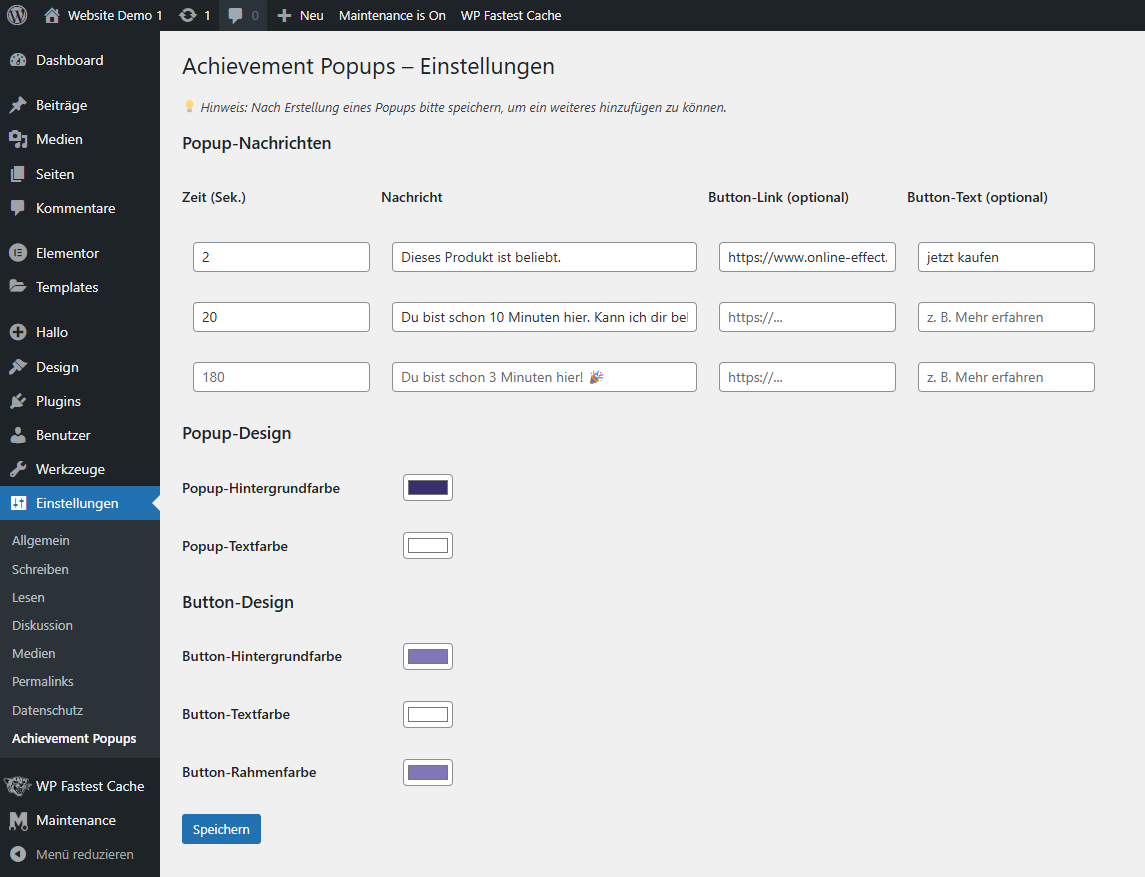 Ein besonderes Highlight ist die Möglichkeit, jedem Popup eine eigene Nachricht und optional einen Button hinzuzufügen. Du kannst so nicht nur motivieren, sondern auch gezielt leiten.