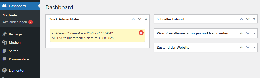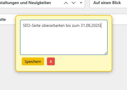 ✅ Sticky Notes im Dashboard: Alle Einträge landen automatisch gut sichtbar im WordPress-Dashboard.