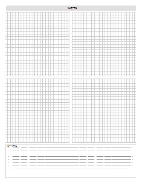 Inhalt: Mehrere Seiten mit Skizzierfeldern und Projektinformationen