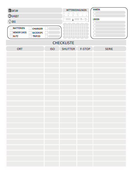 Fotografie-Planungsblatt – Dein perfekter Begleiter für jedes Shooting