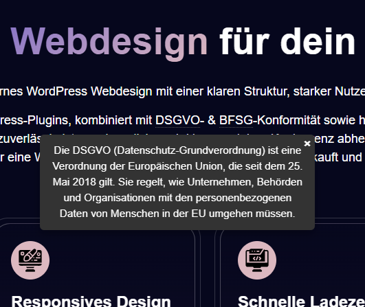 Mobile & Desktop optimiert: Tooltips erscheinen korrekt auf allen Geräten. Bei kleinen Bildschirmen sind sie mittig und gut lesbar.