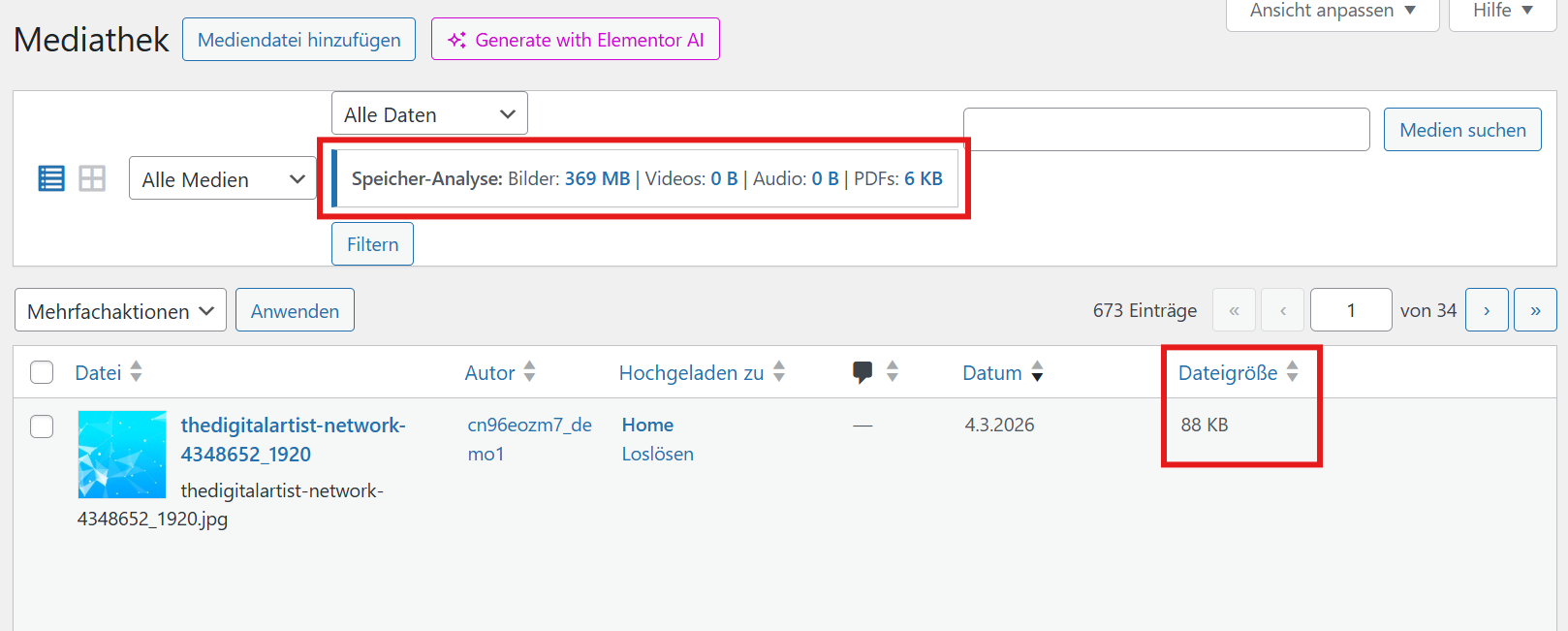 Oft verstecken sich in der Mediathek wahre „Speicherfresser“: Das unkomprimierte 10MB-Urlaubsfoto im Header oder das Full-HD-Video, das eigentlich nur ein kleiner Hintergrund-Clip sein sollte. WordPress verschweigt dir standardmäßig, welche Datei wie viel Platz beansprucht – bis jetzt.
