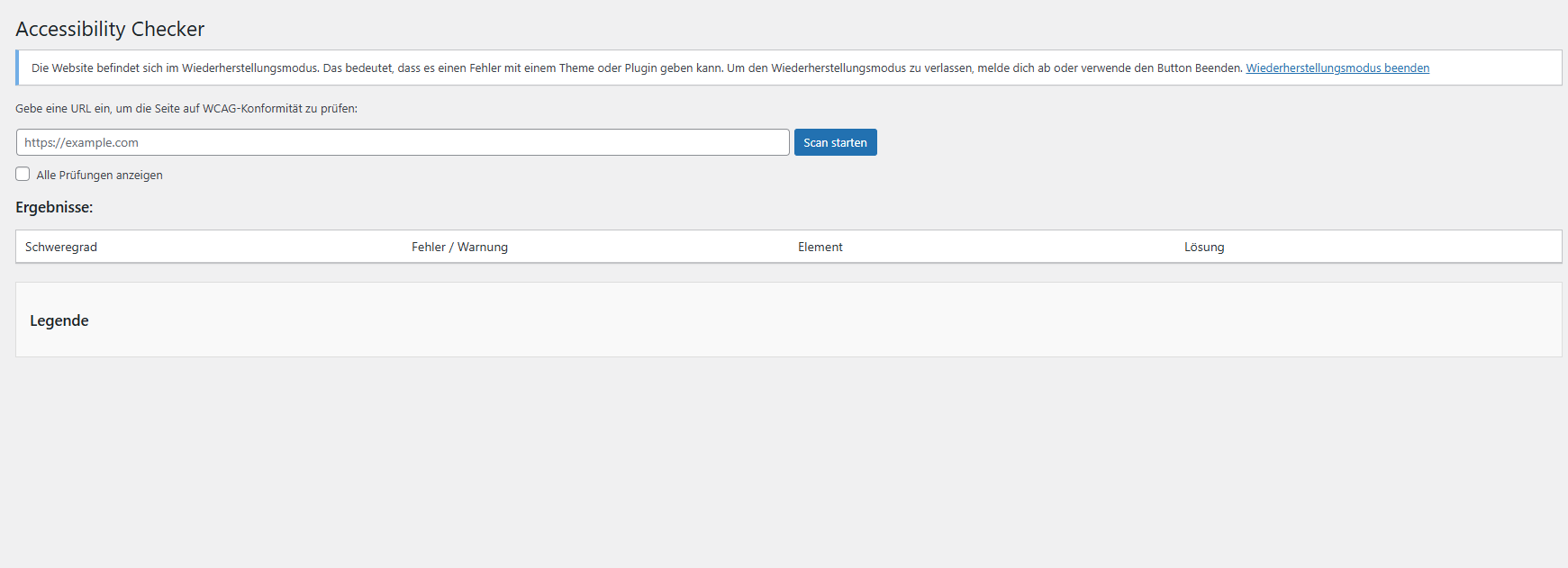 Mit My Accessibility Checker behältst du die Barrierefreiheit deiner WordPress-Seiten jederzeit voll im Griff. Das Plugin scannt jede Seite deiner Website auf wichtige WCAG 2.1 Kriterien und zeigt dir auf einen Blick, wo es hakt – von fehlenden Alt-Texten bis zu fehlenden ARIA-Landmarks.