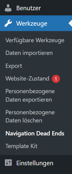 Im Adminbereich unter Werkzeuge → Navigation Dead Ends die Übersicht öffnen