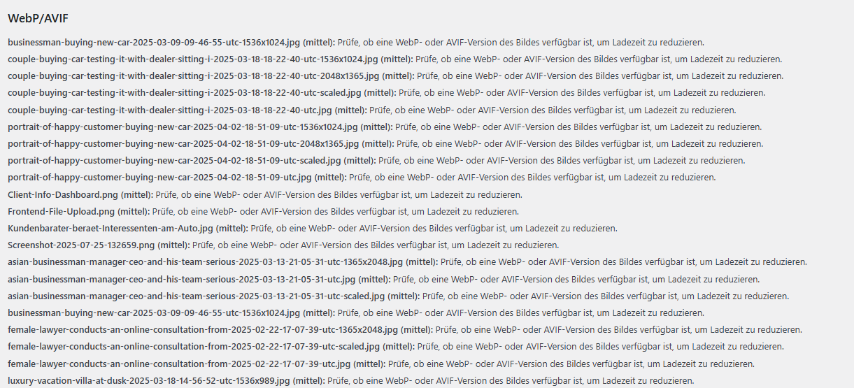 Prüfung auf Lazy Loading und moderne Bildformate (WebP/AVIF)