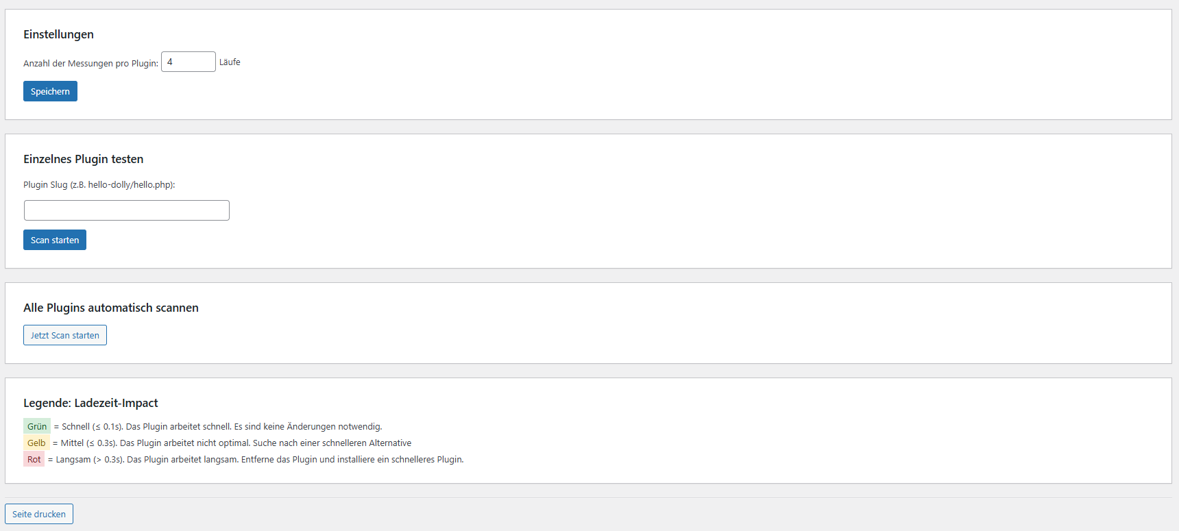 Zeigt exakt, wie viele Sekunden ein Plugin deine Website langsamer macht.