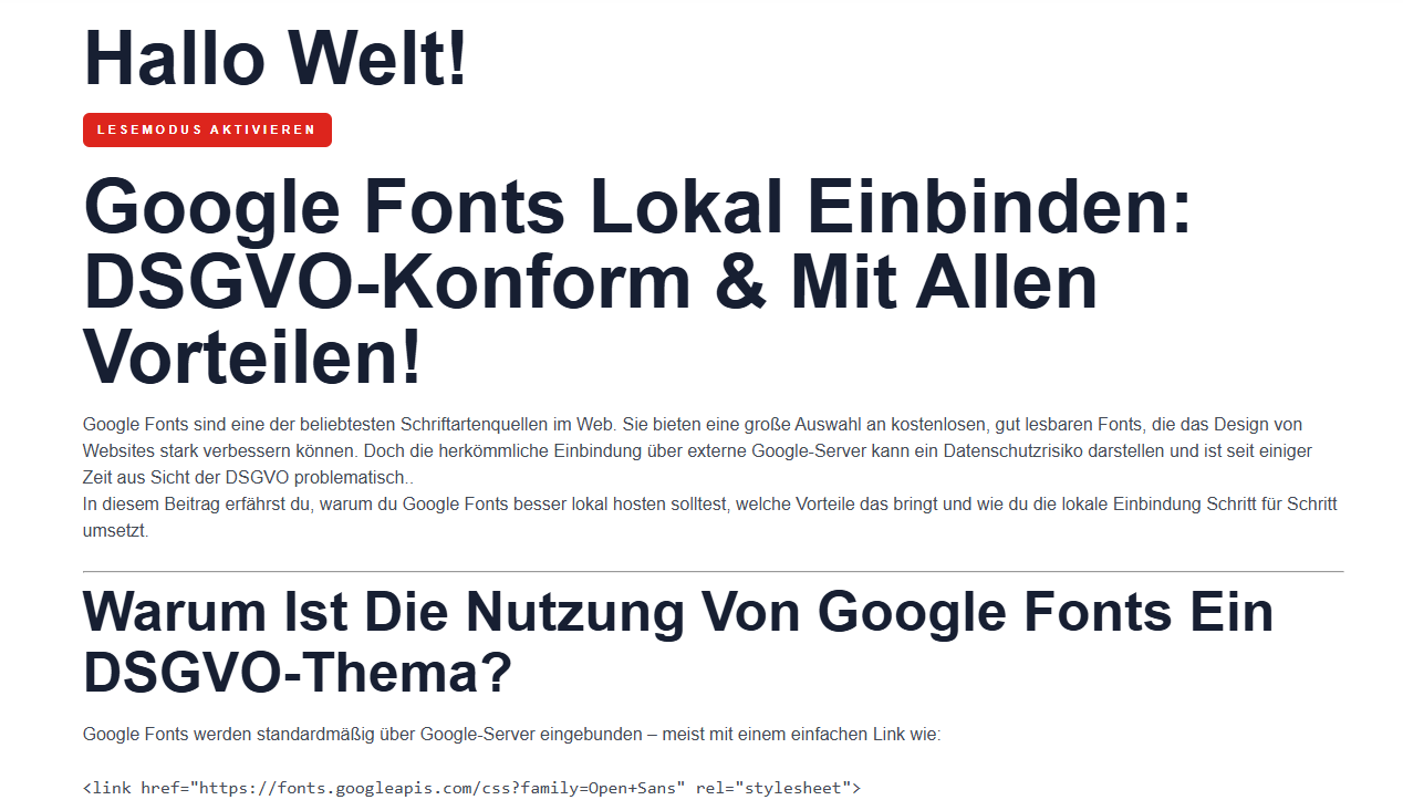 Ein weiterer Vorteil: Reading Mode+ kann ohne technische Kenntnisse aktiviert und genutzt werden. Nach der Installation erscheint automatisch ein Button über jedem Artikel. Mit einem Klick schaltet der Besucher in den Lesemodus – und ebenso schnell wieder zurück. Alles läuft im Frontend, ohne dass du dein Theme anpassen oder Templates bearbeiten musst. Dank moderner Code-Struktur ist das Plugin nicht nur schnell, sondern auch kompatibel mit den gängigen Caching- und SEO-Plugins.