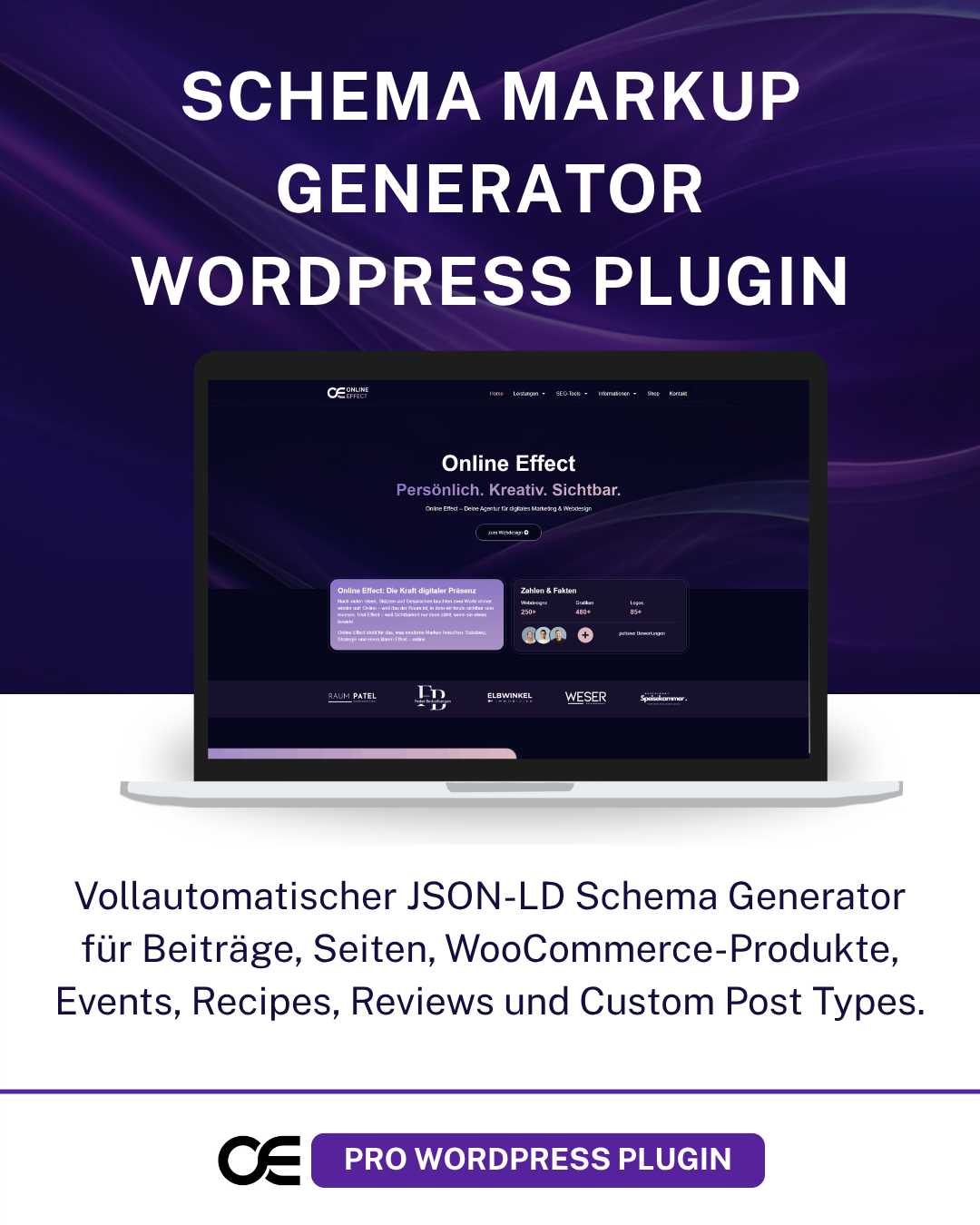 Mit dem Schema Markup Generator Universal machst du deine WordPress-Seiten SEO-freundlich, rich-snippet-ready und suchmaschinenoptimiert – egal, ob du Elementor oder den klassischen Editor nutzt.
