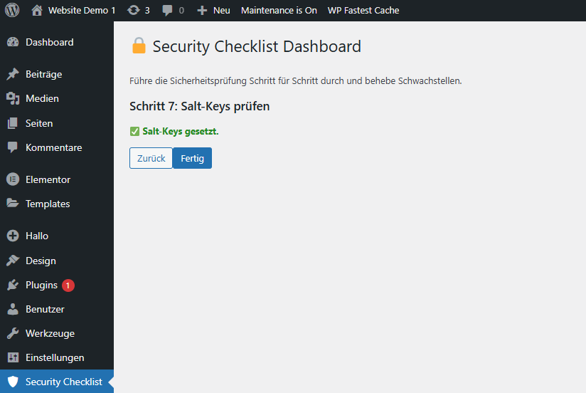 Überprüfung der Salt-Keys: Kontrolliert, ob in der wp-config.php individuelle Sicherheitsschlüssel hinterlegt sind.