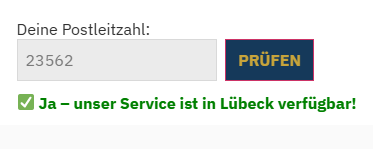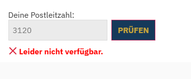 Schnelle Verfügbarkeit: Nutzer geben ihre PLZ ein und erhalten sofort das Ergebnis – ohne Seitenreload dank Ajax-Technologie.