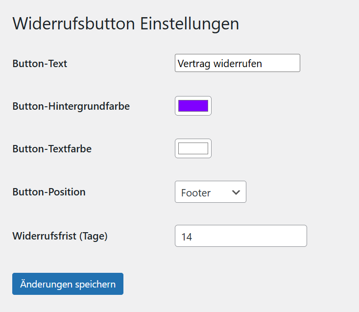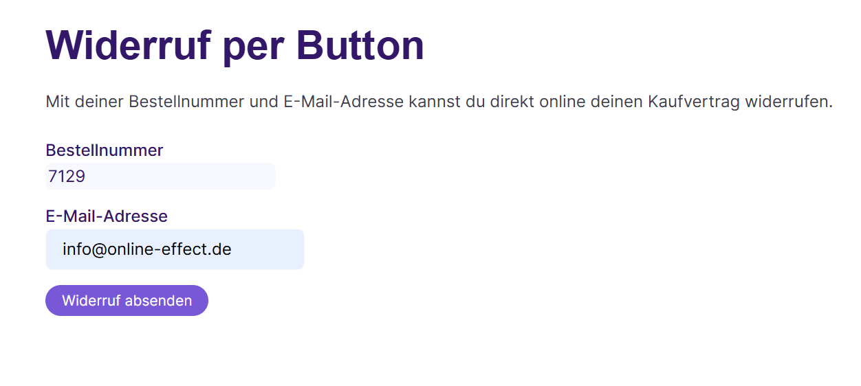 Deine Widerrufsseite sollte nun folgendermaßen aussehen: