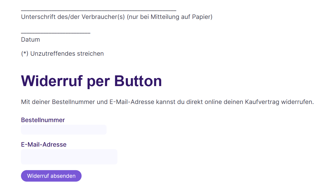- Kundenfreundlich: Einfache Widerrufe ohne Login oder komplizierte Formulare.