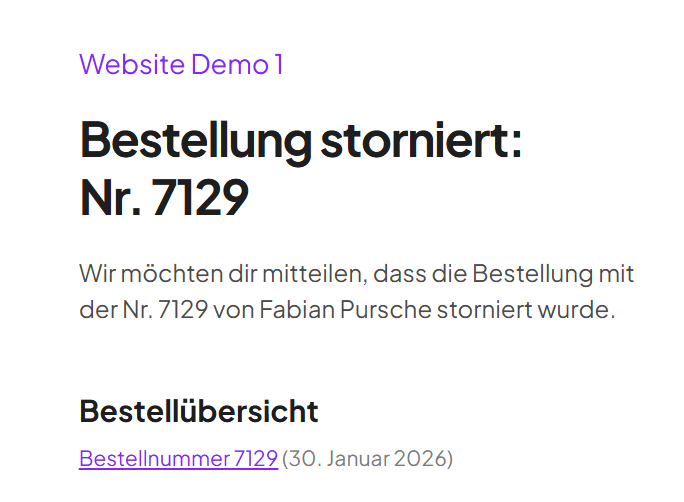 Du erhältst automatisch eine E-Mail darüber, dass die Bestellung storniert wurde.