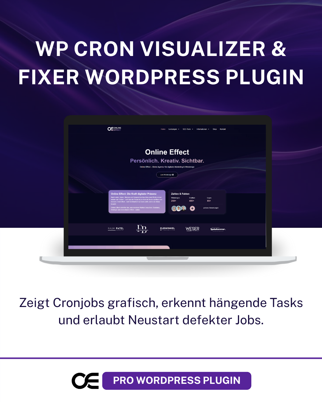 Mit WP Cron Visualizer & Fixer erhältst du ein leistungsstarkes Werkzeug, um die Zuverlässigkeit und Stabilität deiner WordPress-Installation zu erhöhen.